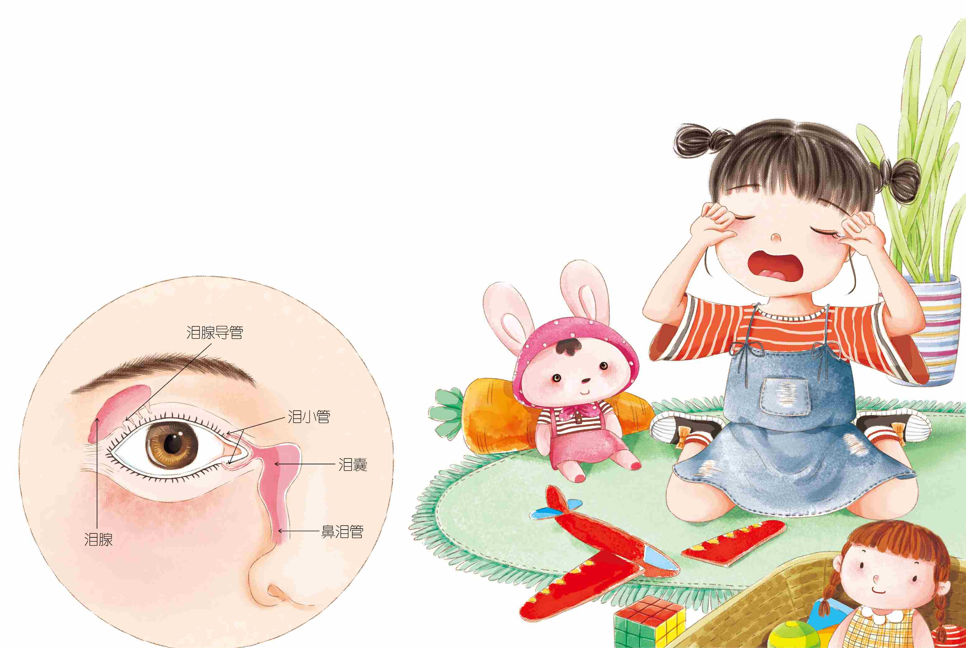 眼泪咸咸的,小朋友们对它一点儿都不陌生。可你知道吗,眼睛宝宝身体里住着个制造眼泪的小工厂,叫作泪腺。眼泪就是从那儿被制造出来的。