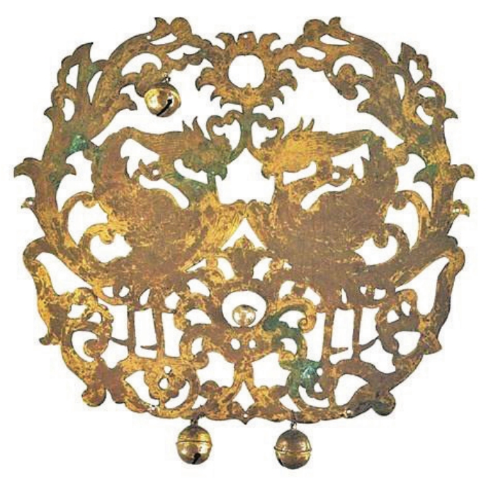 ②湖南长沙黄泥圹出土的金片装饰物。这些用金银箔镂空而成的装饰物,虽然不能说就是剪纸,但在刻制技术和艺术风格上,可以说是剪纸艺术的前身,如图3-1所示。