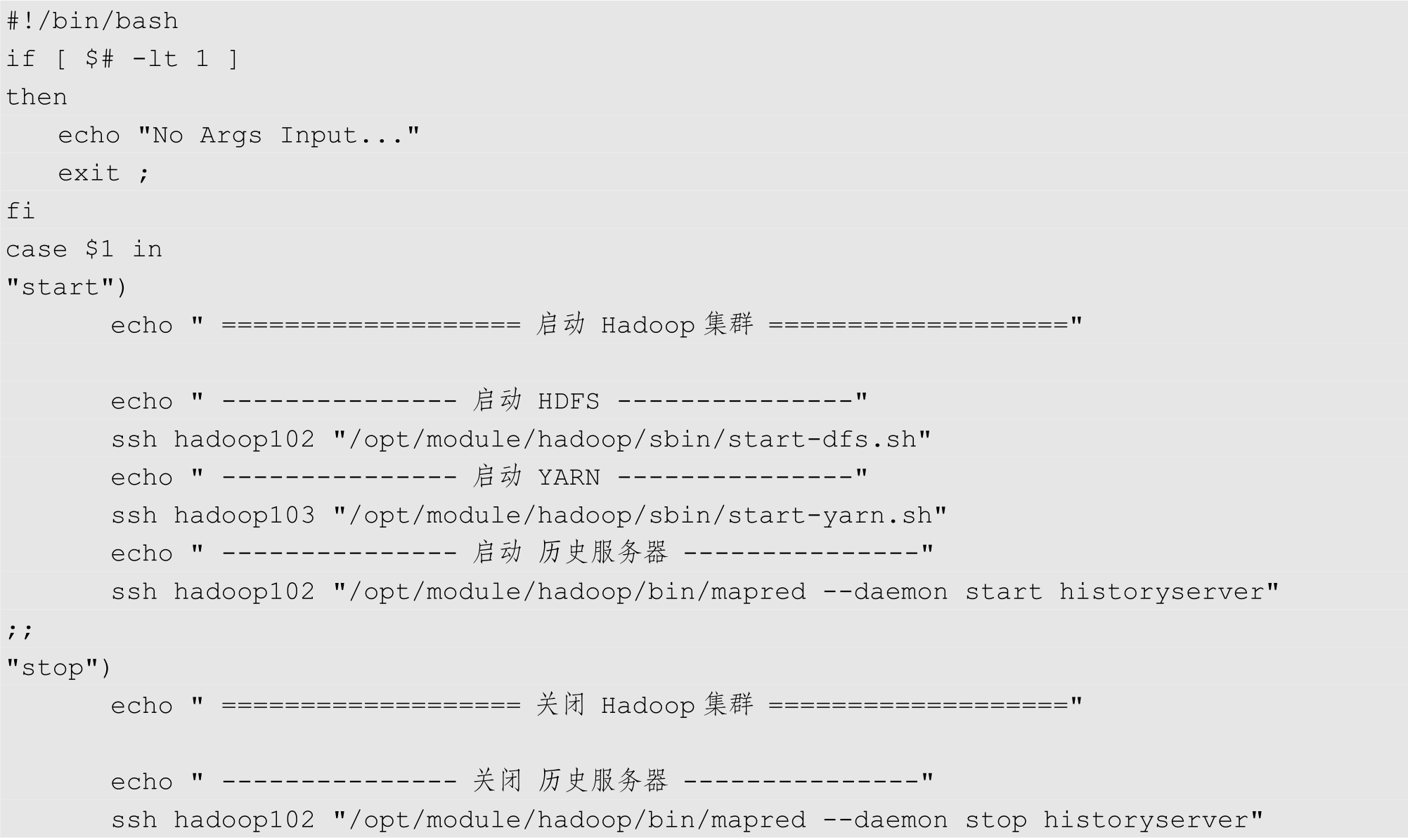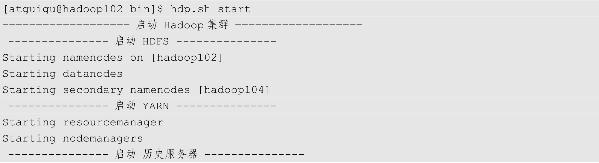 ①在/home/atguigu/bin目录下创建脚本hdp.sh。