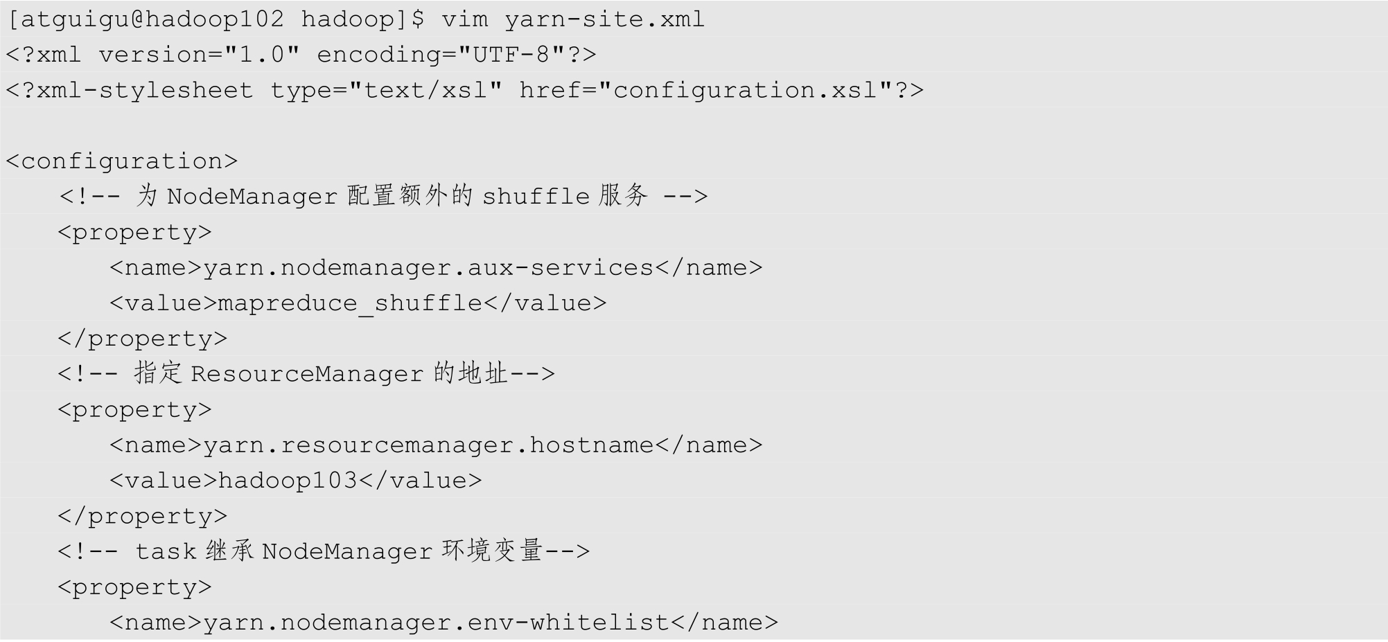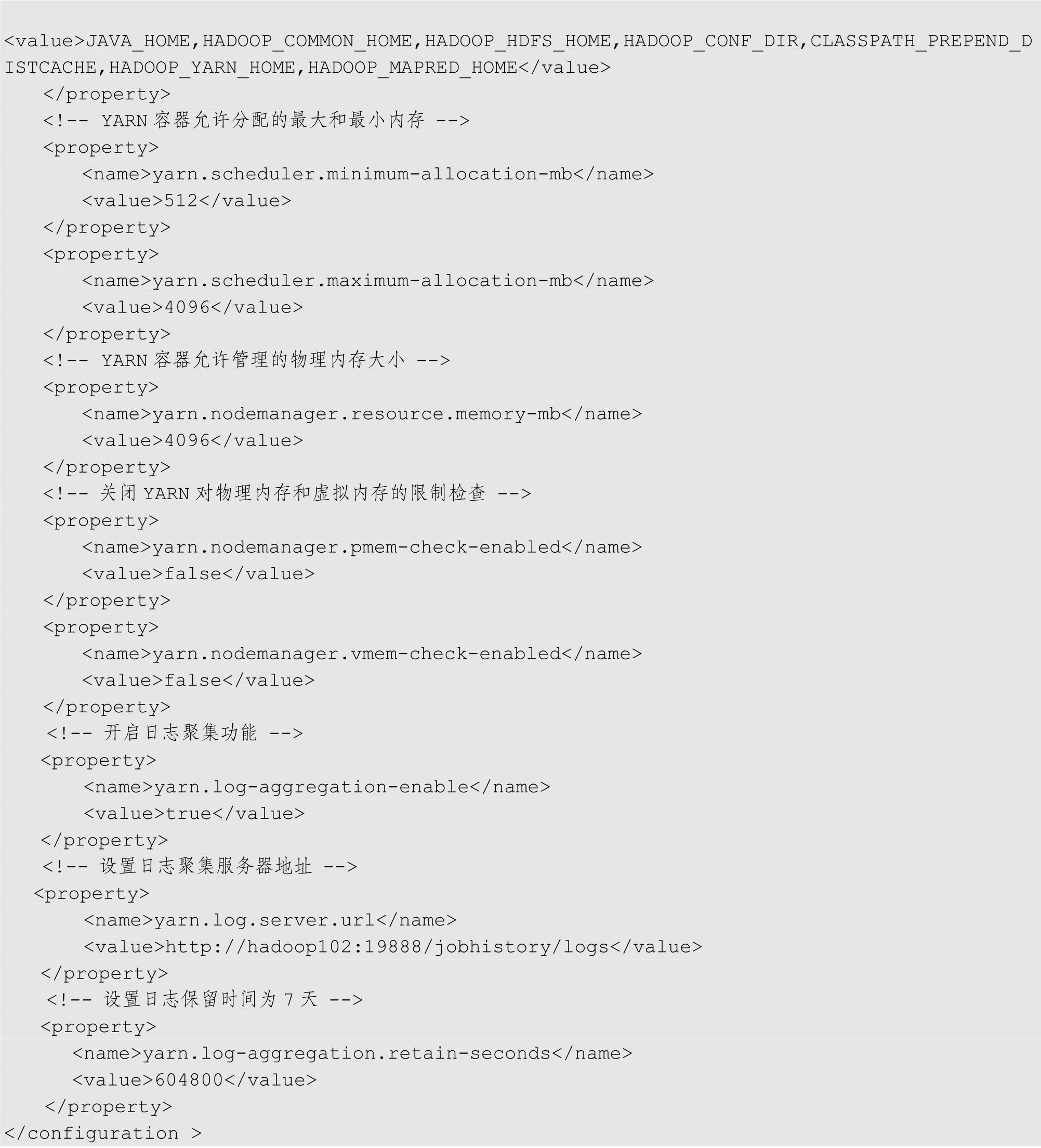 ③ 关于YARN的配置文件yarn-site.xml,主要配置如下两个参数。