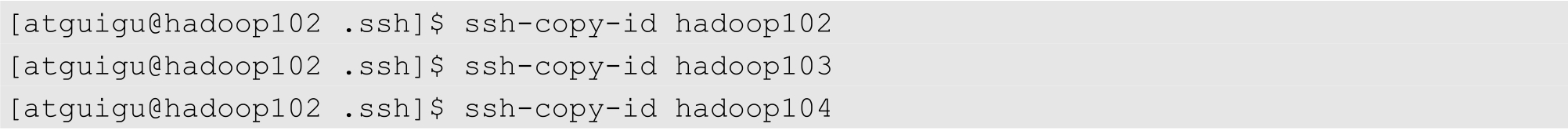 注意: 需要在hadoop102上采用root账号,配置免密登录到hadoop102、hadoop103、hadoop104;还需要在hadoop103上采用atguigu账号,配置免密登录到hadoop102、hadoop103、hadoop104。