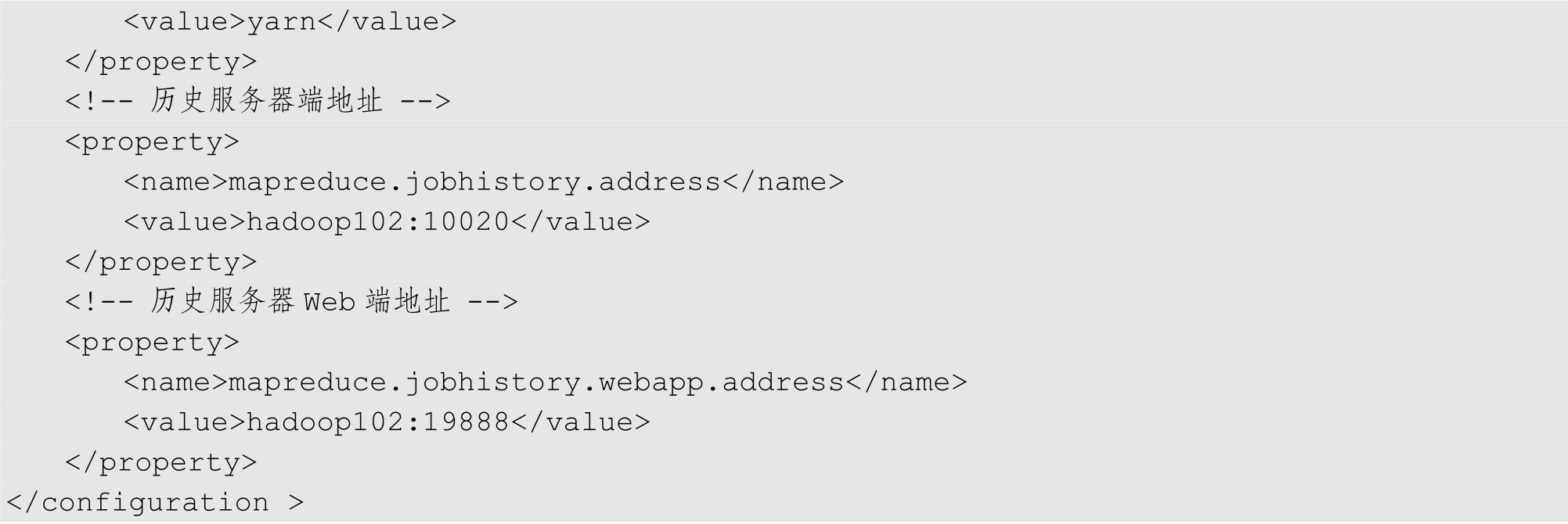④ 关于MapReduce的配置文件mapred-site.xml,主要配置一个参数,指明MapReduce的运行框架为YARN。