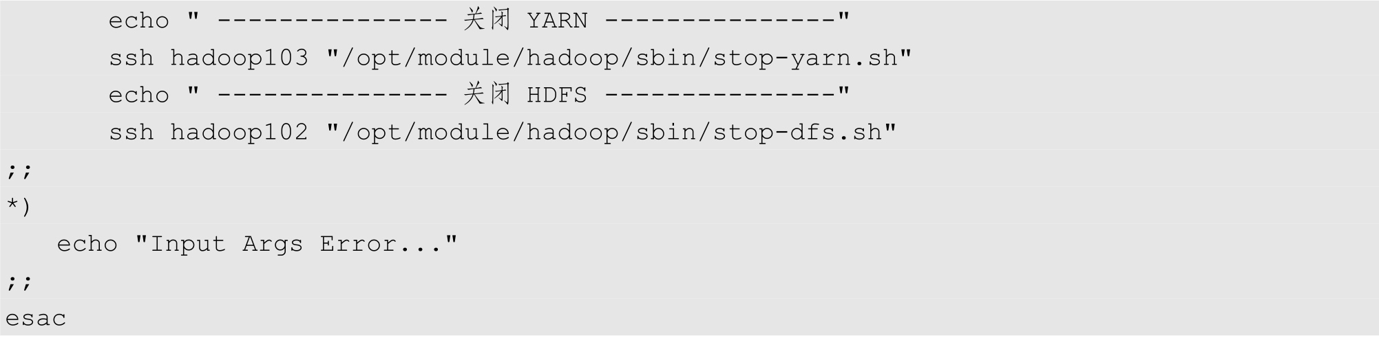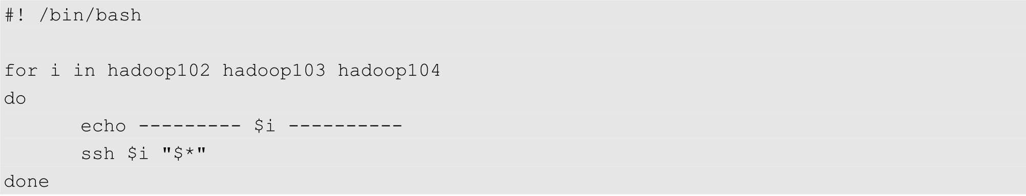 ②脚本思路:通过i变量在hadoop102、hadoop103和hadoop104节点服务器间遍历,分别通过ssh命令进入三台节点服务器,执行传入参数指定命令。