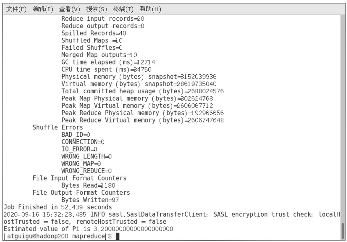 在集群的任意节点服务器上执行下面的命令,如果看到如图3-4所示的PI实例运行结果,就说明集群启动成功。