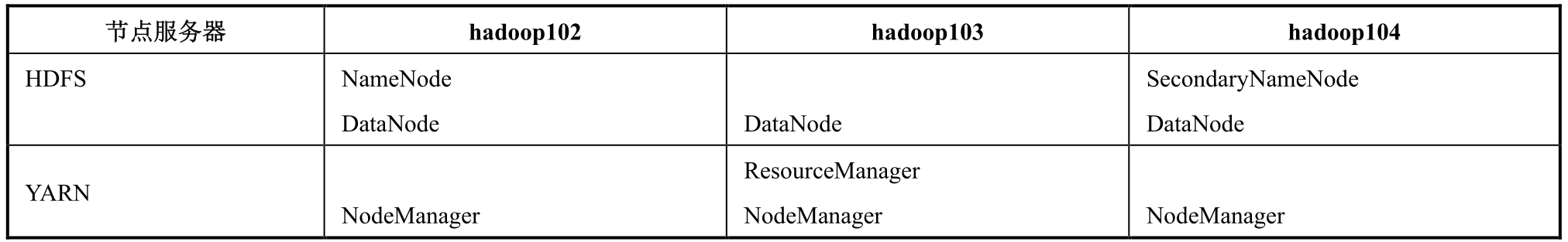 Hadoop的运行模式包括本地模式、伪分布式模式和完全分布式模式。本次主要搭建实际生产环境中比较常用的完全分布式模式,在搭建完全分布式模式之前,需要对集群部署进行提前规划,不要将过多的服务集中到一台节点服务器上。我们将负责管理工作的NameNode和ResourceManager分别部署在两台节点服务器上,在另一台节点服务器上部署 SecondaryNameNode,所有节点服务器均承担 DataNode 和NodeManager角色,并且DataNode和NodeManager通常存储在同一台节点服务器上,所有角色尽量做到均衡分配。
