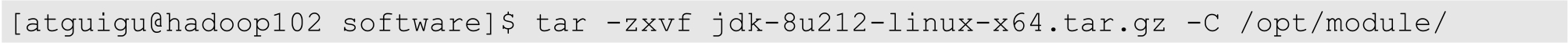 ② 解压JDK到/opt/module目录下,使用tar命令来解压.tar或.tar.gz格式的压缩包,使用-z选项指定解压.tar.gz格式的压缩包。使用-f选项指定解压文件,使用-x选项指定解包操作,使用-v选项显示解压过程,使用-C选项指定解压路径。
