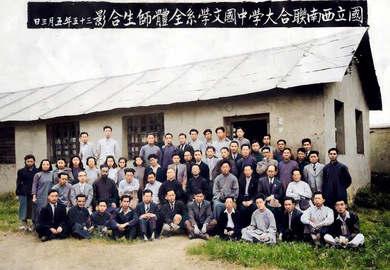 1946年5月3日,西南联大中文系全体师生在教室前合影