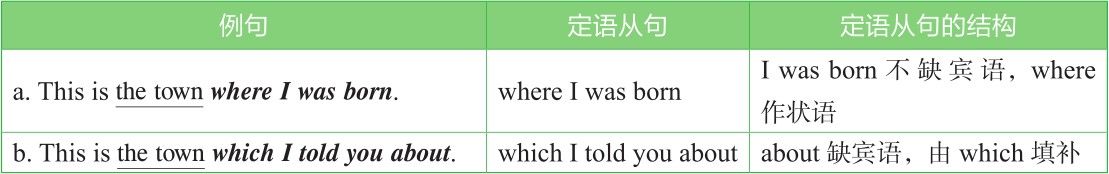 从以上讨论我们看到,a句和b句有完全一样的主句This is the town,但是,由于从句I was born和I told you about结构不同,导致从句连词不同。这就是所谓的“ 看从句,定连词 ”。需要指出的是, 所谓的“定连词”,其实也就是分析从句结构,连词背后反映的是从句结构,因此,“看从句,定连词”的思想也可以表述为“看从句,定结构”,即确定和分析从句结构特征。