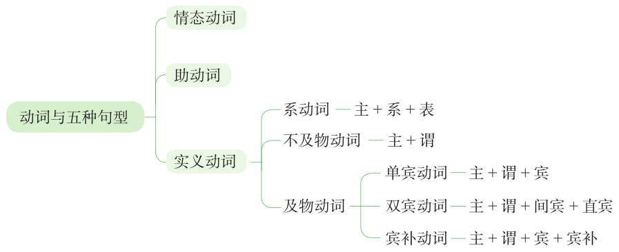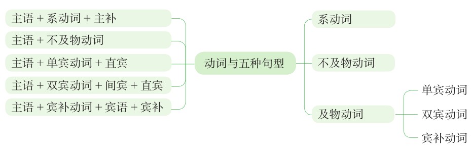 以上思维导图给出了五种基本句型中的谓语动词特点: