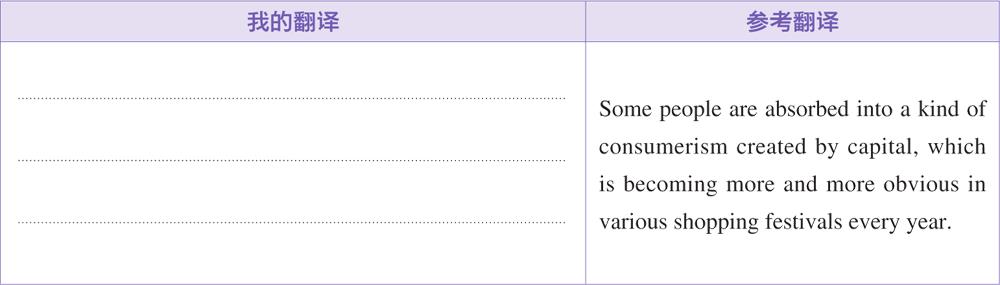 有的人被资本营造出来的消费主义所吸引,这种消费主义在每年的各种购物节中愈发明显。(英二2010年小作文/英一2010年大作文)