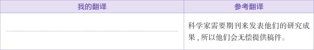 Scientists need journals in which to publish their research, so they will supply the articles without monetary reward. (18词)