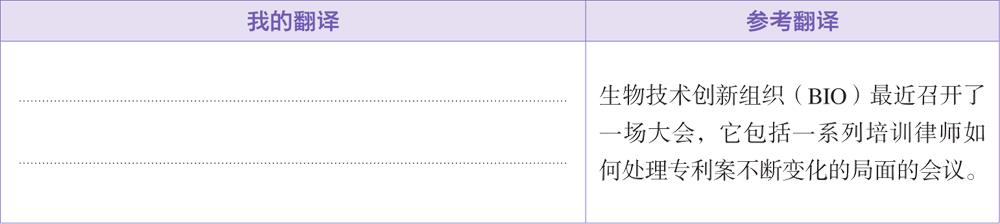 The BIO recently held a convention which included sessions to coach lawyers on the shifting landscape for patents. (18词)