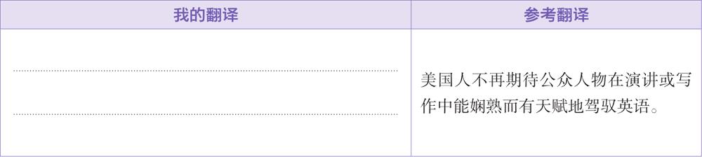Americans no longer expect public figures, whether in speech or in writing, to command the English language with skill and gift. (21词)
