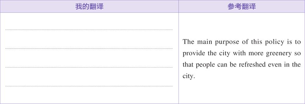 这一政策的主要目的是让城市拥有更多的绿化,让人们在城市中也能够心旷神怡。(英一2015年大作文)