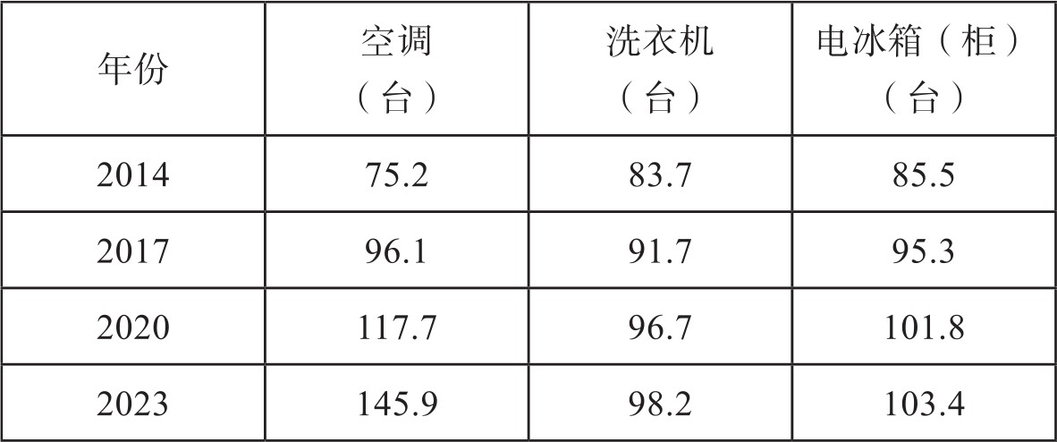 近年来全国居民平均每百户年末主要耐用消费品拥有量