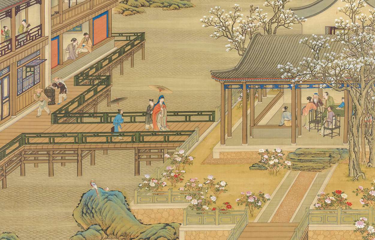 ,优美的诗句勾起了人们对宋代花市欣欣向荣的美好想象:花市里繁花似锦、人潮涌动,此时春风化作绣娘的巧手,把这春日盛景绣在了帷幕与衣裳之上。