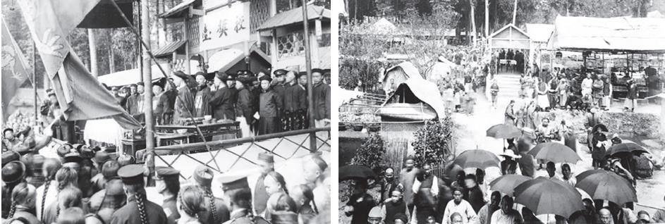 ,劝业会举办得如火如荼。周善培先后到日本七次,游日经历对周善培在川推行新政产生了重要影响,他一改过去只重视工业制造的片面做法,强调“农工商并重”,将商业劝工会改为劝业会,对青羊宫劝业会地点、空间布局和租地方式进行改造,加入赛马等现代活动,让传统花会更具现代元素。