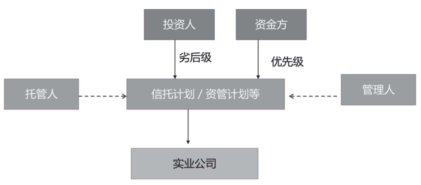 契约型架构为投资者提供了一种间接持有实业公司股权的方式,投资者的权利主要体现在合同条款上,而合同条款的主要方面通常由基金法律所规范。此外,契约型架构中的持股平台信托计划、资管计划等均是由投资人(委托者)、受托者(管理人)、托管人三方构成。如图 3-10 所示。