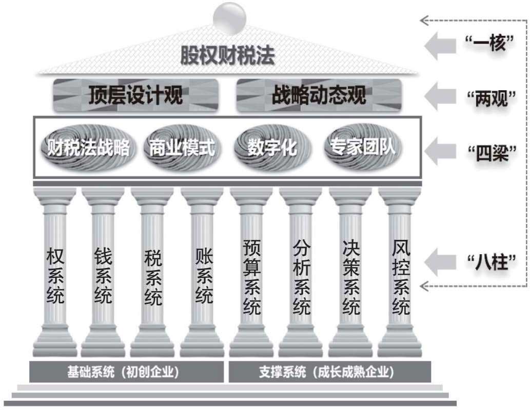 股权财税法落地运营的“一核、两观、四梁、八柱”财税治理架构具体怎么设计,笔者在这里不展开,只是简要提示如下。