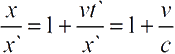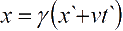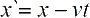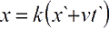 将式(3-2)(3-3)(3-4)(3-5)联立为方程组,为了消去t´,将式(3-4)等号两边同除以x´,再将式(3-3)代入,可得:
