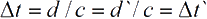 以S系为观察系,根据式(3-1)中的时刻变换关系,得: