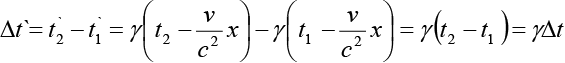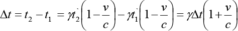 而如果时刻变换式中采用 形式,则同一事件在两个做相对运动的惯性系中,所经过的时间变换关系为: