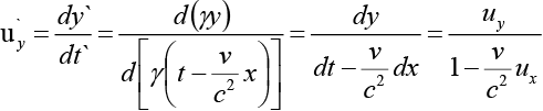 同理,由式(3-32)可求得新的速度逆变换式。新的正、逆速度变换式分别表示为(因横向坐标y和z的变换相同,后文统一以下标“
