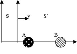 的A、B两小球分别与相对速度为v的S´、S系固联,并发生完全非弹性碰撞,即碰撞后粘连在一起,如图4-1。