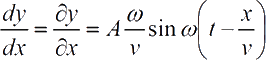 由波动方程(1-2)可知,y是x和t的函数,故dy/dx实际上应是y对x求偏微商,即:
