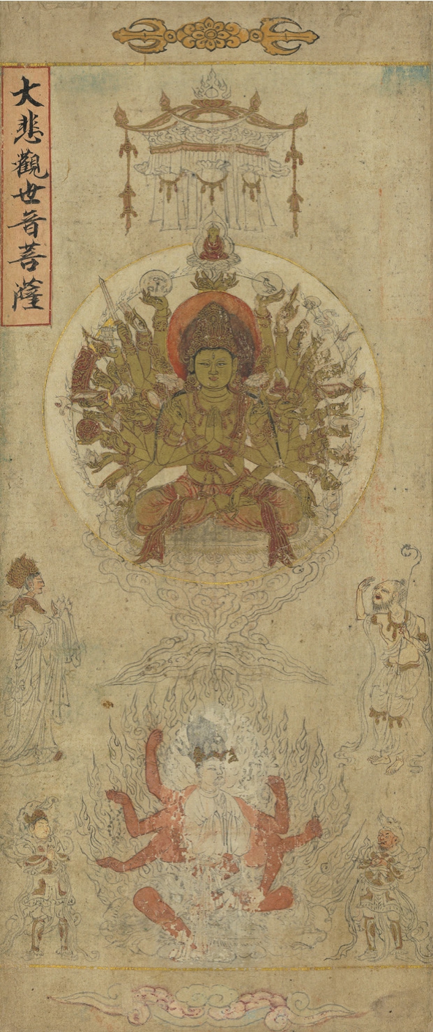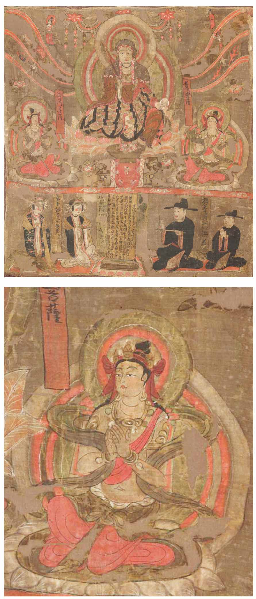 大英博物馆藏《地藏、六道及普门菩萨组合幡画》及细部普门菩萨图(226页)