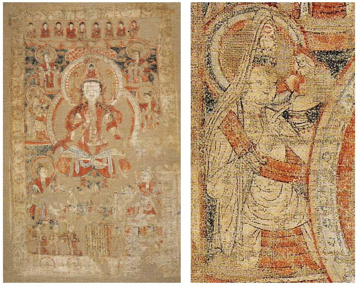 吐鲁番木头沟出土《观音经变》绘画及送子观音局部放大图(87页)