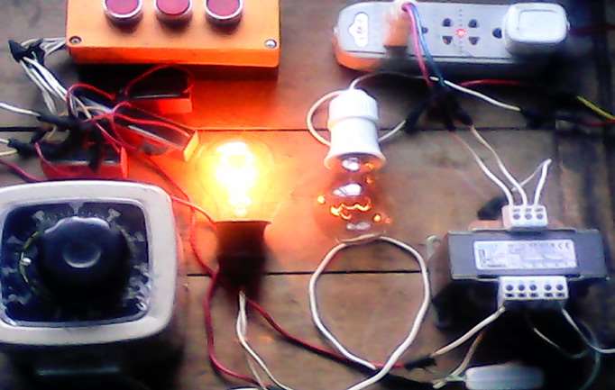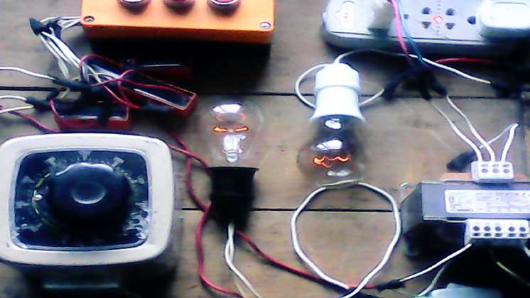 试验照片:左灯泡输出负载R2,右灯泡输入线路电阻R1。
