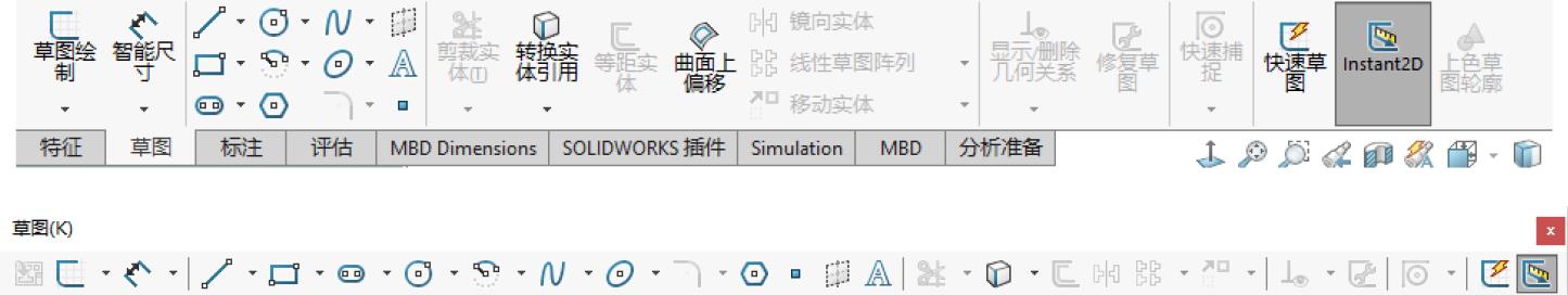 和【特征】工具栏一样,【草图】工具栏也有两种形式,如图1-18所示。