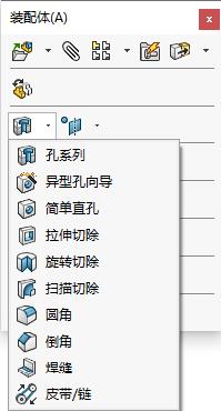 【插入零部件】按钮:单击可插入零部件、现有零件、装配体。