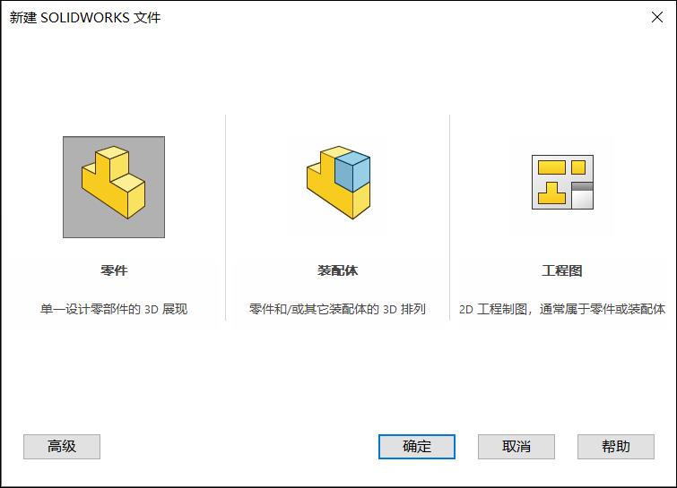 【零件】按钮,再单击【确定】按钮,即可打开一个空白的零件文件,后续存盘时,系统默认的扩展名为.sldprt。
