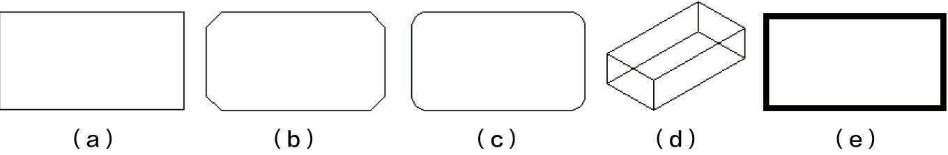 (5)圆角(F):指定圆角半径,绘制带圆角的矩形,如图2-24 (c)所示。