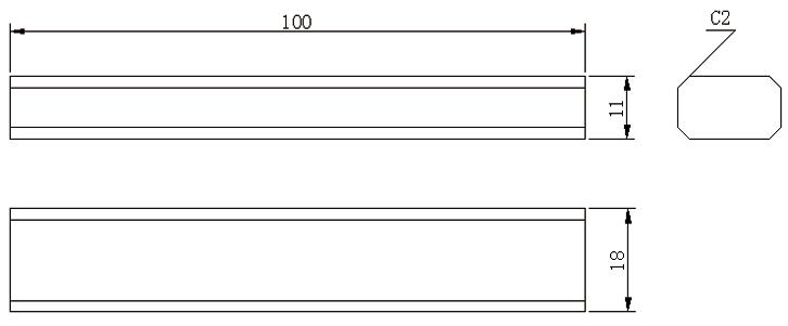 单击“绘图”工具栏中的“直线”按钮 ,绘制主视图两条棱线。一条棱线端点的坐标值为(0,32)和(@100,0),另一条棱线端点的坐标值为(0,39)和(@100,0),结果如图2-29所示。