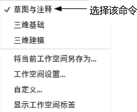 如图1-1所示,在弹出的菜单中选择“草图与注释”命令,如图1-2所示,可切换到AutoCAD经典风格的界面。