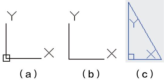 AutoCAD的模型空间和图纸空间适用不同的视图显示方式。模型空间使用单一视图显示,绘图时通常使用这种显示方式;图纸空间能够在绘图区创建图形的多视图,用户可以对其中的每一个视图进行单独操作。默认情况下,当前UCS与WCS重合。图1-23(a)所示为模型空间下UCS的坐标系图标,通常放在绘图区的左下角;也可以指定它放在当前UCS的实际坐标原点位置,如图1-23(b)所示。图1-23(c)所示为图纸空间下的坐标系图标。