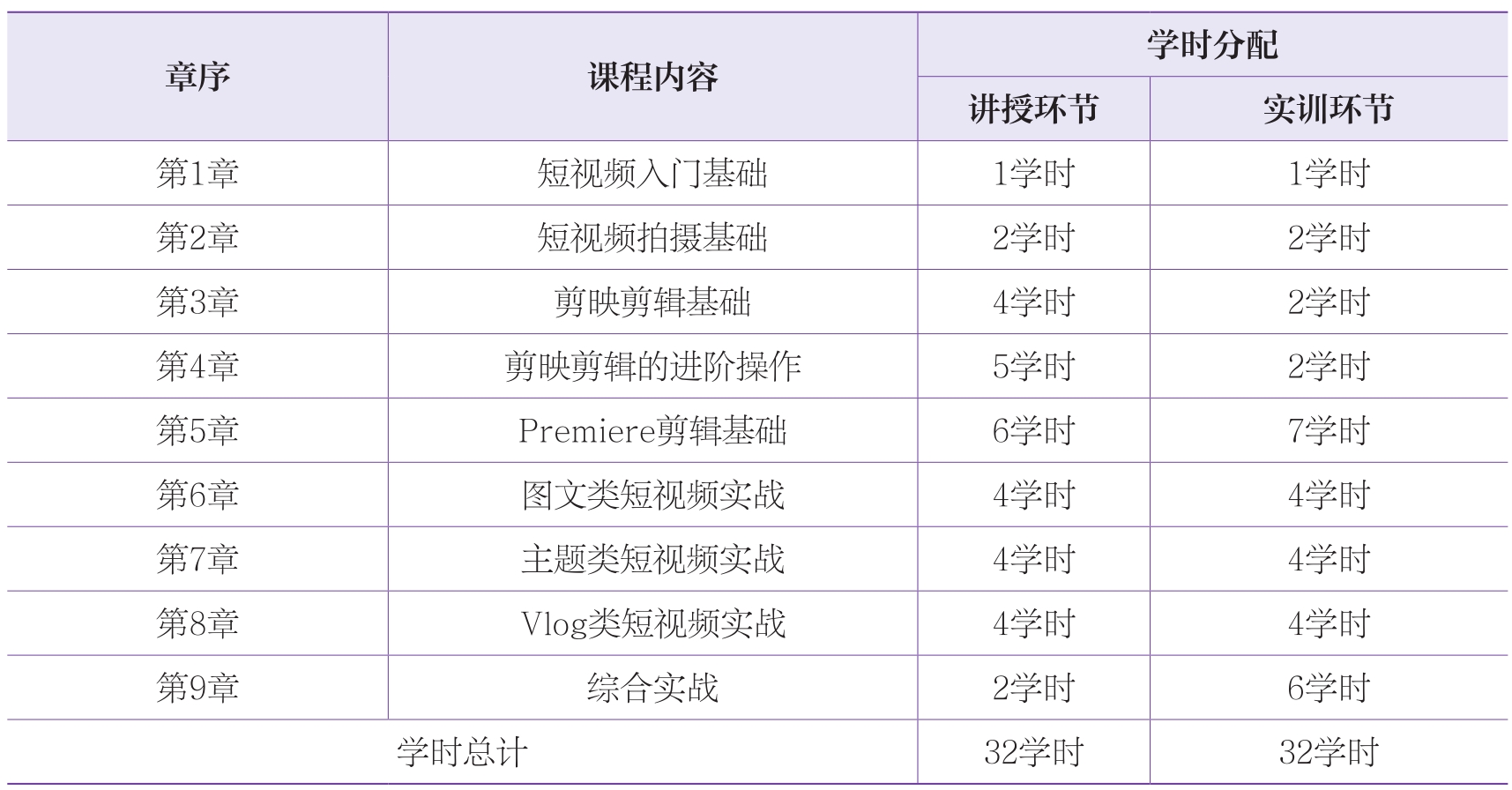 本书的参考学时为64学时,其中讲授环节为32学时,实训环节为32学时。各章的参考学时可参见下表。