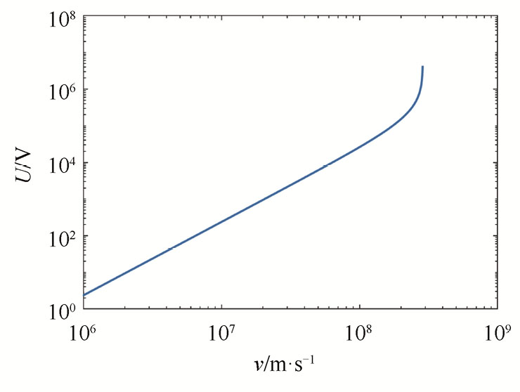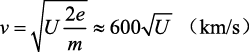 电子电位 U 的单位是V。这一关系式只适用于电子速度小于0.1 c 的情况,在速度很大时,根据相对论原理,有