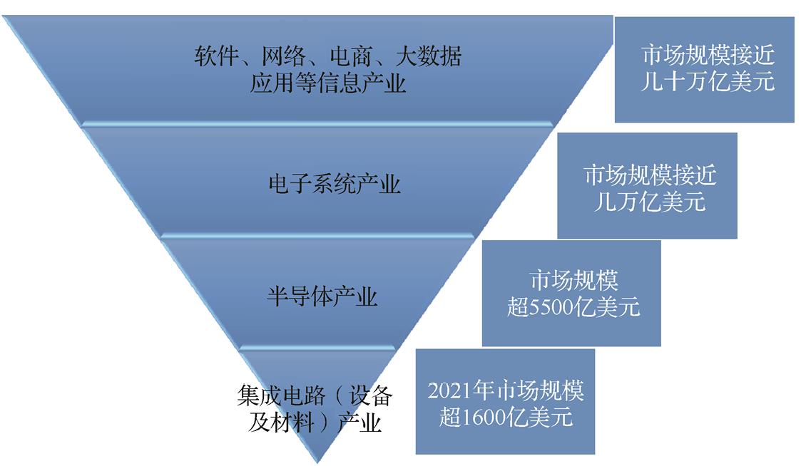 图1.5 集成电路制造及信息产业链的倒金字塔结构