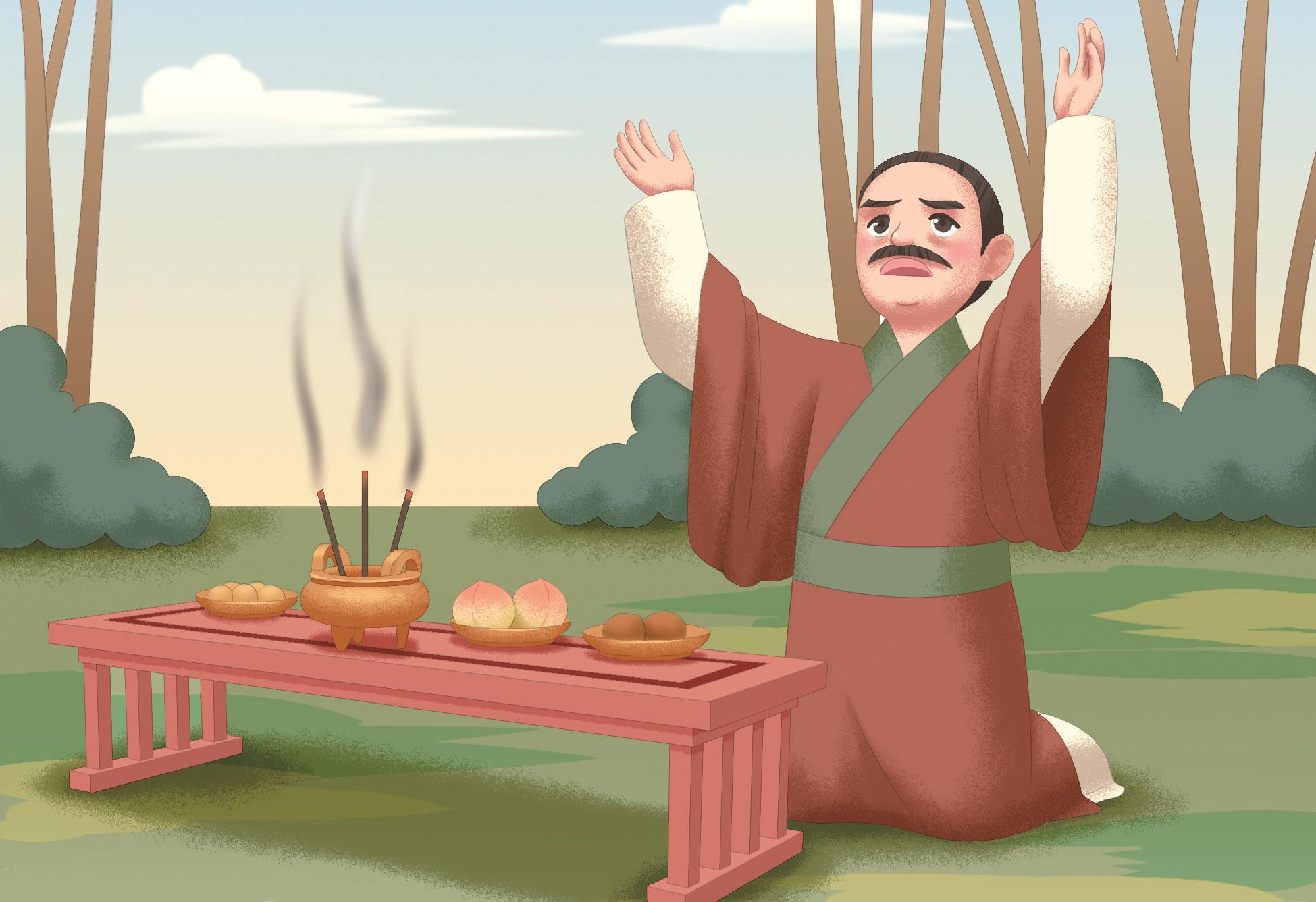 群臣簇拥着王莽出城,来到南郊。王莽跪下祈祷,说:“老天既然把大权给了我,为什么不帮我剿灭那帮逆贼呢?要是我真有罪的话,情愿被雷劈死!”说完就捶胸大哭,并磕了无数个响头。他命人写了告天的文书,在里面罗列了自己的功劳,然后召集百姓,让他们每天从早哭到晚,有哭得特别悲伤的就封官。