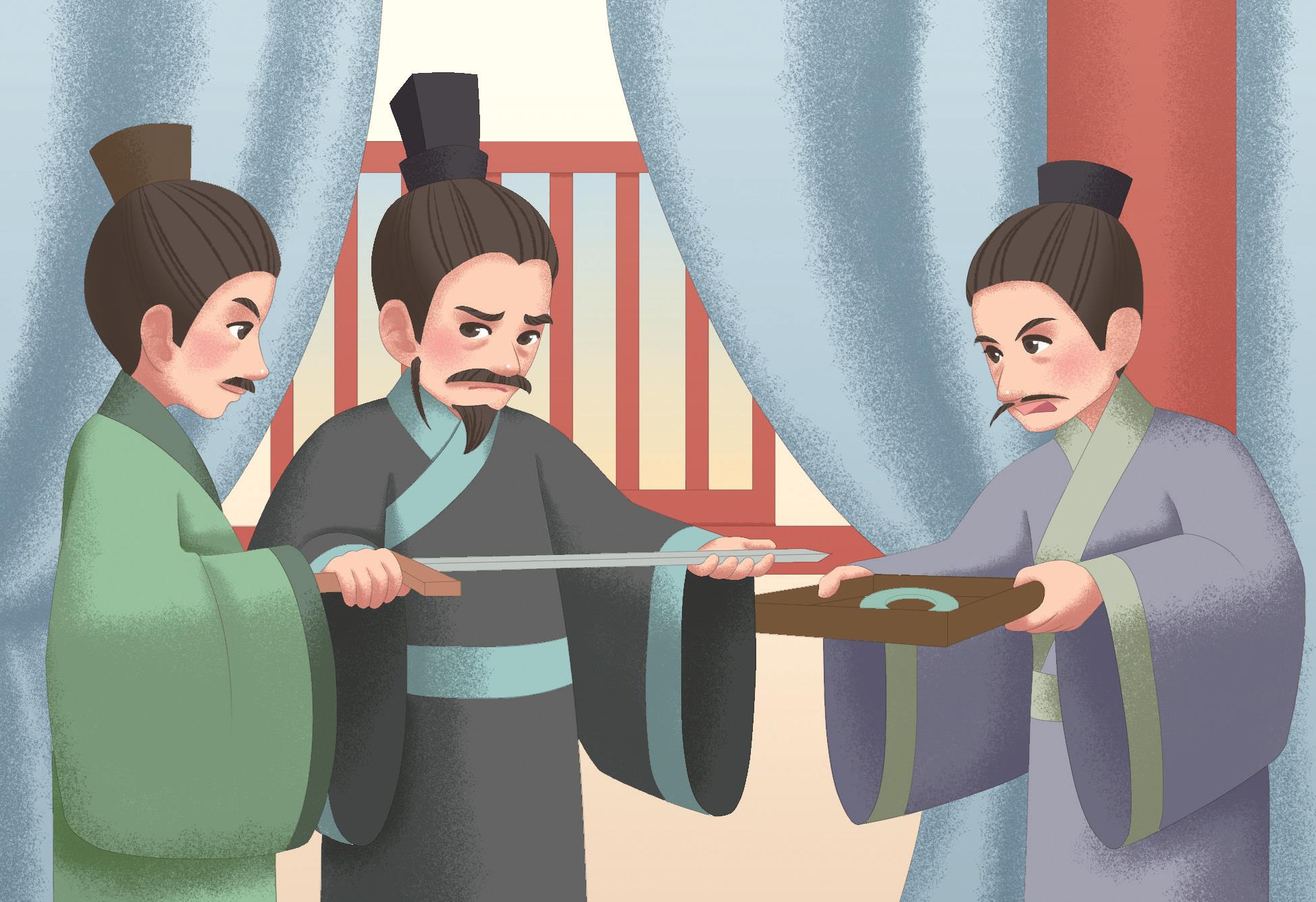 不一会儿,刘玄把剑还给刘縯,刘縯拿着剑出去后,众人也都散了。刘縯的舅舅樊宏私底下对刘縯说:“我听说鸿门宴上,范增曾三举玉玦暗示项羽杀死刘邦,今天申屠建献上玉玦,我看他居心叵测,不能不防!”刘縯似信非信,微笑不语。其实,刘玄向刘縯要剑,是有人教他,等刘縯将剑献上后,就给他安上一个意图弑君的罪名,将他杀死。偏偏刘玄迟疑不决,没有照做。