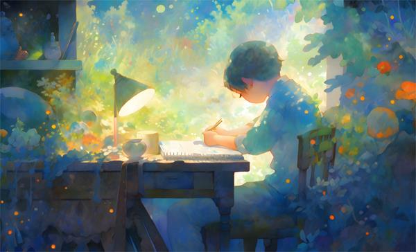 子夜,灯下读书,一切寂静又美好。柔和的灯光仿佛温柔的手,轻抚着夜色,将黑暗悄然推开,现出一片白亮的天地。阅读者轻微的翻书声、悠长而均匀的呼吸声,伴随着屋瓦上滴落的雨滴声,越发显出夜的寂静。