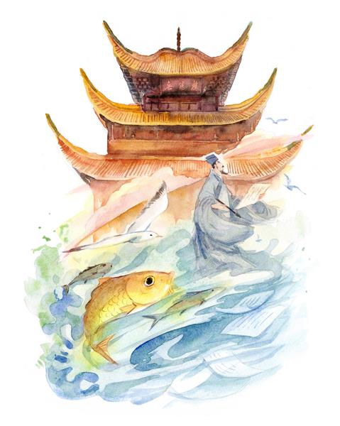不说岳阳楼,光是写楼前的洞庭景色,范仲淹就写得冠绝古今——“衔远山,吞长江,浩浩汤汤,横无际涯;朝晖夕阴,气象万千。”