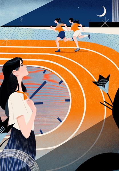于是,我莫名其妙地开始练习长跑。我的跑步成绩从初中开始就是班里垫底的。因为体能实在太差,拼尽全力也跟不上他们,我有些泄气,想要停下来。木子放慢脚步来到我的身边:“不要着急,我以前跑一百米都喘呢。”她耐心地给我讲解长跑的技巧:“三步一呼、三步一吸,手臂要前后摆动,前脚掌发力……”女孩温和的声音揉进晚风,从我耳边掠过,我不由得有些走神:木子和我的性格,真是不一样。