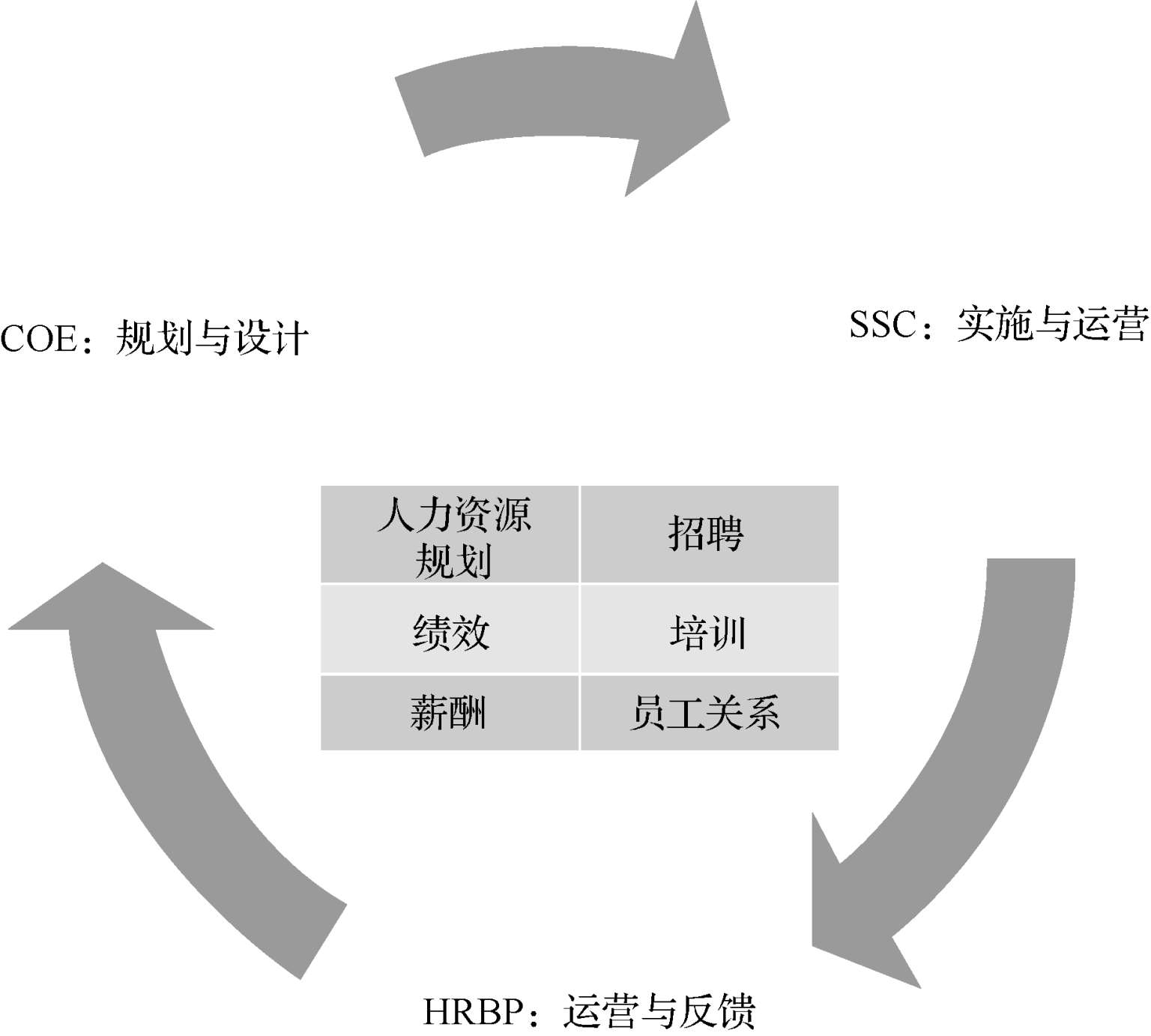 人力资源三支柱模型本质上是对企业人力资源组织和管控模式的创新。人力资源三支柱模型是戴维·尤里奇在1997年提出的,即COE(Center Of Expertise,专家中心)、HRBP(Human Resource Business Partner,人力资源业务合作伙伴)和SSC(Shared Service Center,共享服务中心),如图1-2所示。以三支柱为支撑的人力资源体系源于企业战略,服务于企业业务,其核心理念是通过组织能力再造,让人力资源管理更好地为组织创造价值。