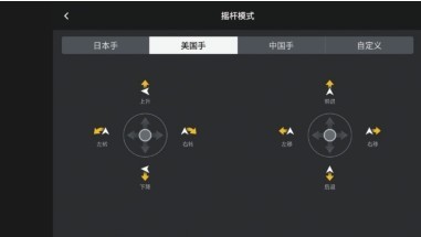 在自定义摇杆模式下,用户可以根据自己的习惯和喜好来设置摇杆方向所对应的飞行器控制方式,具体如下图所示。