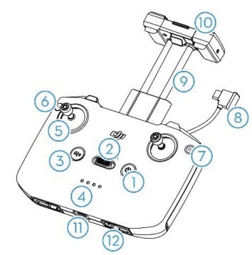 11.充电/调参接口(USB Type-C): 用于遥控器的充电和调参。